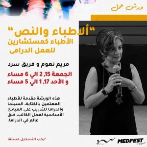 وبجانب يسري نصر الله تقدم الكاتبة الكبيرة مريم نعوم أيضاً ورشة خلال أيام المهرجان تحت عنوان ورشة عمل مقدمة من “ميدفيست مصر” بالتعاون مع “سرد – مريم نعوم” للأطباء المهتمين بالكتابة، السينما والدراما للتدريب على المبادئ الأساسية لعمل الكاتب، خلق عالم في الدراما، كتابة الشخصيات والتعرف على الحبكة الدرامية من خلال يومين عمل مع مريم نعوم وفريق كتاب سرد.