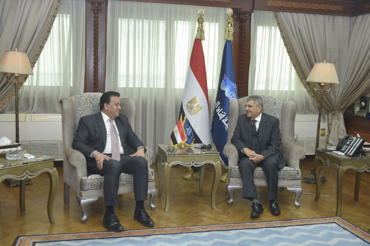 التقى الدكتور خالد عبدالغفار وزير التعليم العالي والبحث العلمي والقائم بأعمال وزير الصحة والسكان، الفريق أسامة ربيع، رئيس هيئة قناة السويس، لبحث سبل التعاون المشترك بين مستشفيات محافظة الإسماعيلية ومن ضمنها المُدرجة ضمن منظومة التأمين الصحي الشامل، والمستشفيات والمراكز الصحية التابعة لـ هيئة قناة السويس، وذلك بمقر مبنى الإرشاد بمحافظة الإسماعيلية وذلك ضمن زيارة الوزير للمحافظة لمتابعة تنفيذ مشروع التأمين الصحي الشامل الجديد.