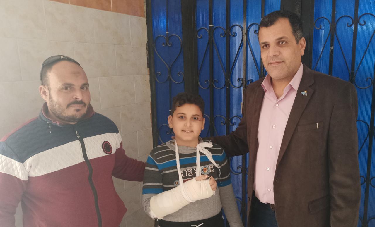 أطمأن صباح اليوم ياسر عمارة وكيل وزارة التربية والتعليم بالسويس علي صحة وسلامة الطالب عمر أشرف عبد الكريم والمقيد بالصف الرابع الابتدائي وذلك بعد إصابته بكسر في رسغ اليد اليمني بعد انزلاقه أثناء نزوله منفرداً من على سلم المدرسة .