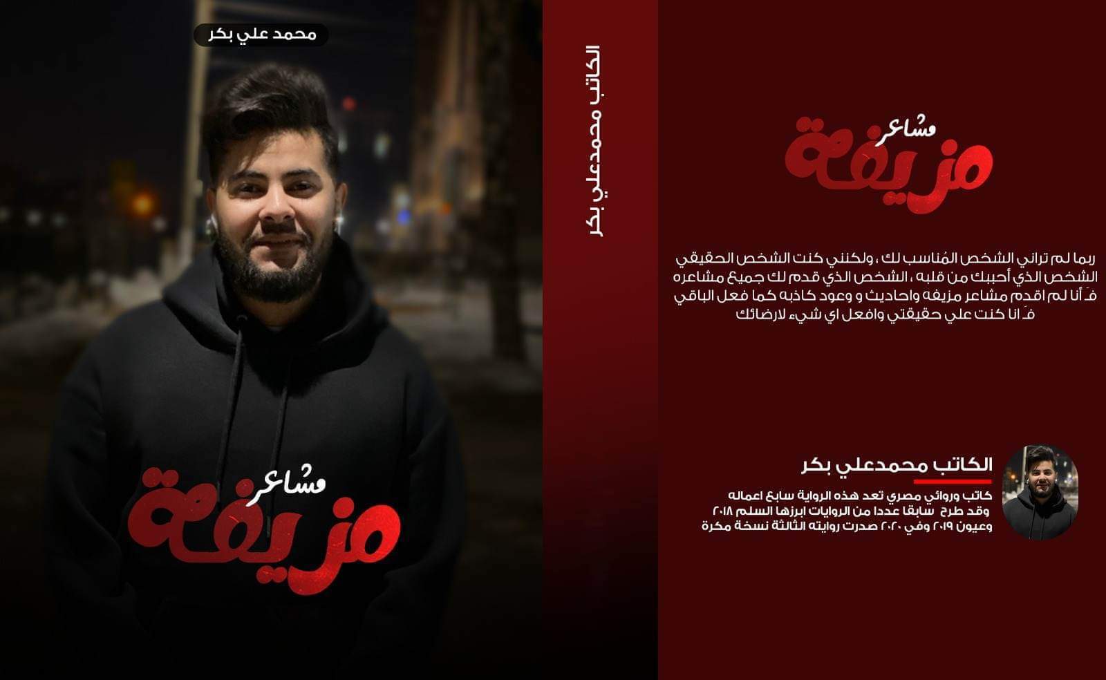 يستعد الكاتب الشاب “محمد علي بكر” لطرح روايته الجديدة “مشاعر مزيفة” التي من المنتظر صدورها عن إحدى دور النشر العربية خلال الأيام المقبلة.