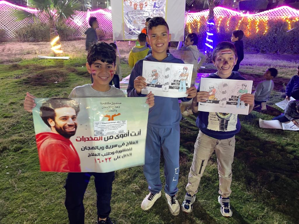 نظم صندوق مكافحة وعلاج الإدمان والتعاطي برئاسة نيفين القباج وزيرة التضامن الاجتماعي ورئيس مجلس إدارة الصندوق برامج توعوية لرفع الوعى لدى الأطفال من سن 6 _16 ” عاما بمخاطر التدخين وأضرار المخدرات بمحيط مناطق مدينة السلام والنهضة والعبور ،وذلك بالتعاون مع منظمة فيس البلجيكية.