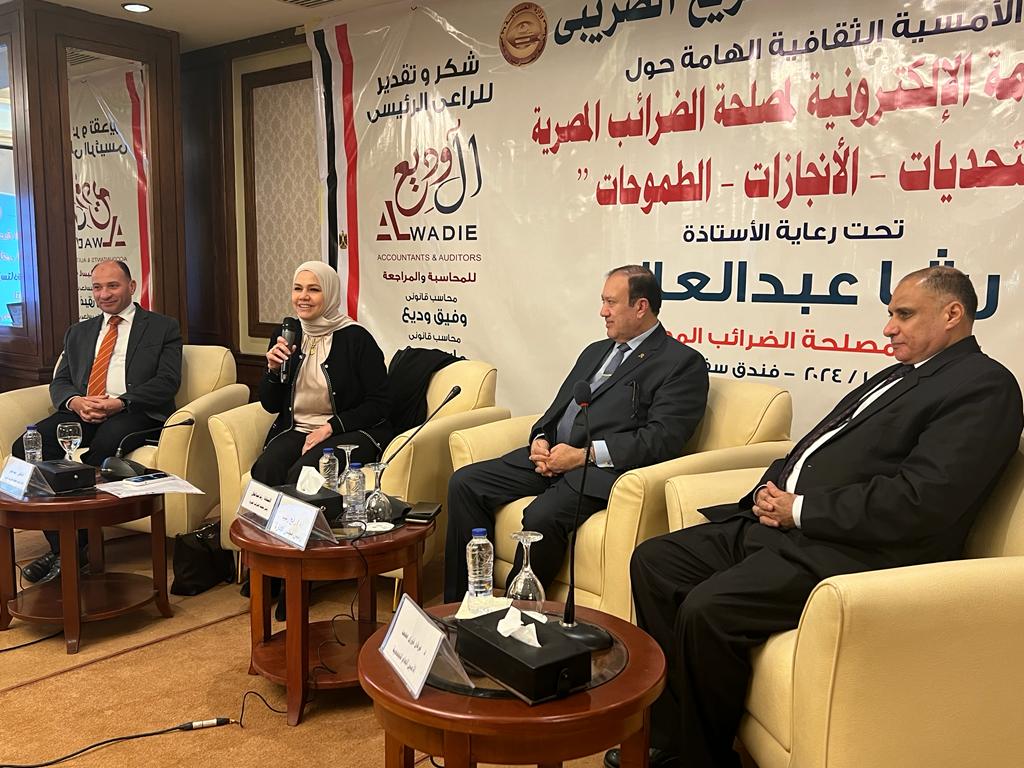 وفي سياق متصل أعرب ” دكتور رابح رتيب رئيس الجمعية العلمية للتشريع الضريبي ” عن شكره لوزارة المالية و لمصلحة الضرائب المصرية على المرونة في حل المشكلات التي تواجه المجتمع الضريبي ، وأن مصر سباقة في أعمال التطوير و الميكنة ،مؤكدا أن مصلحة الضرائب المصرية نموذج يحتذي به في المنطقة العربية ، وأن تطبيق المنظومات المميكنة سيكون له مردود عظيم على الاقتصاد المصري ، وجذب الاستثمارات الأجنبية و بالتالي زيادة الحصيلة الضريبية ، وأن مصلحة الدولة المصرية هو الهدف الاسمي المشترك بين مصلحة الضرائب و المجتمع الضريبي .