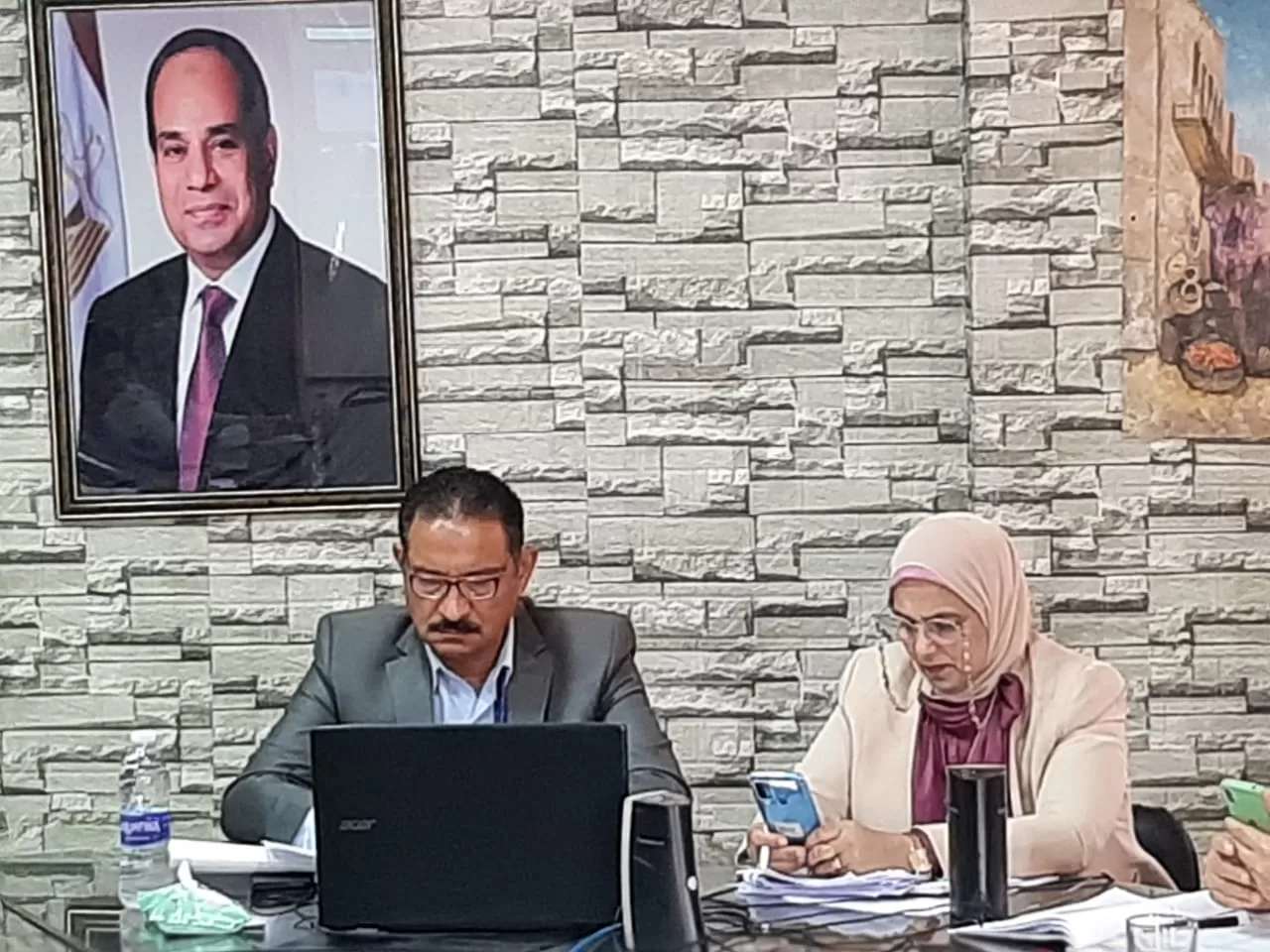 غرفة العمليات المركزية بحضور سمية الخطيب وكيل المديرية، والمقدم هاني عماد من مديرية أمن الجيزة، ونيڤين نعيم مدير إدارة الإحصاء بالمديرية، ومجدى أحمد كامل مدير إدارة التعليم الثانوي، ومحمد حفني مدير إدارة المتابعة، والدكتورة نشوى ممثلة مديرية الصحة بالجيزة.
