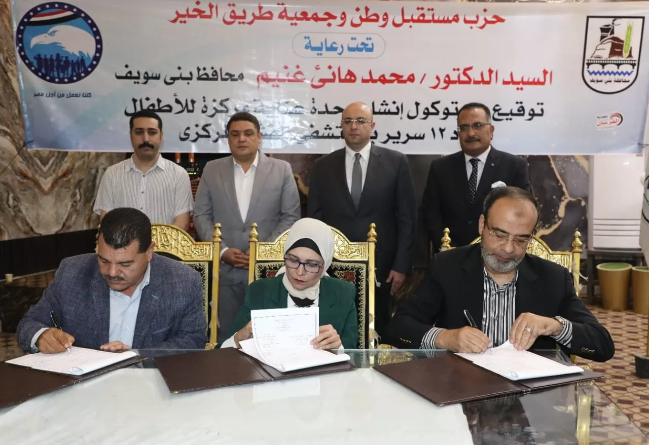 شهد الدكتور محمد هاني غنيم محافظ بني سويف، مراسم توقيع بروتوكول تعاون مع جمعية “طريق الخير للتنمية “بالفشن، لإنشاء وحدة عناية مركزة للأطفال لتعزيز مستوى الخدمة الصحية بمستشفى الفشن المركزي،حيث وقع على البروتوكول: الدكتورة سماح جاد وكيل وزارة الصحة، المهندس محمد على عبد الفضيل رئيس مجلس إدارة الجمعية – عضو مجلس الشيوخ، محمد بكري رئيس مركز ومدينة الفشن