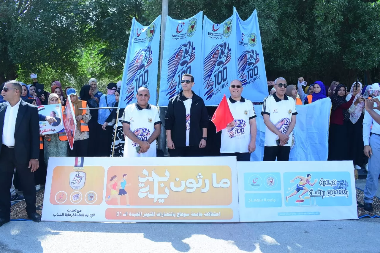 شارك الدكتور حسان النعماني رئيس جامعة سوهاج، والعقيد أركان حرب غريب عبد الحافظ المتحدث العسكري الرسمي للقوات المسلحة، الطلاب ذوي الهمم فى فعاليات ماراثون بداية الرياضي، والذى جاء ضمن احتفالات الجامعة بالذكري ال51 لانتصارات أكتوبر المجيدة، حيث أطلقوا إشارة البدء لانطلاق ماراثون بداية من أمام كلية التربية وحتي المركز الدولي للمؤتمرات بمقر الجامعة الجديد، بحضور الدكتور عبدالناصر يس والدكتور خالد عمران نواب رئيس الجامعة والدكتور محمد كمال منسق عام الأنشطة الطلابية، والدكتور طارق ذكي مدير مركز خدمة الطلاب ذوي الإعاقة، وأحمد عاطف مدير عام الإدارة العامة لرعاية الشباب المركزية، ونخبة من عمداء الكليات وأعضاء هيئة التدريس والعاملين بالجامعة.
