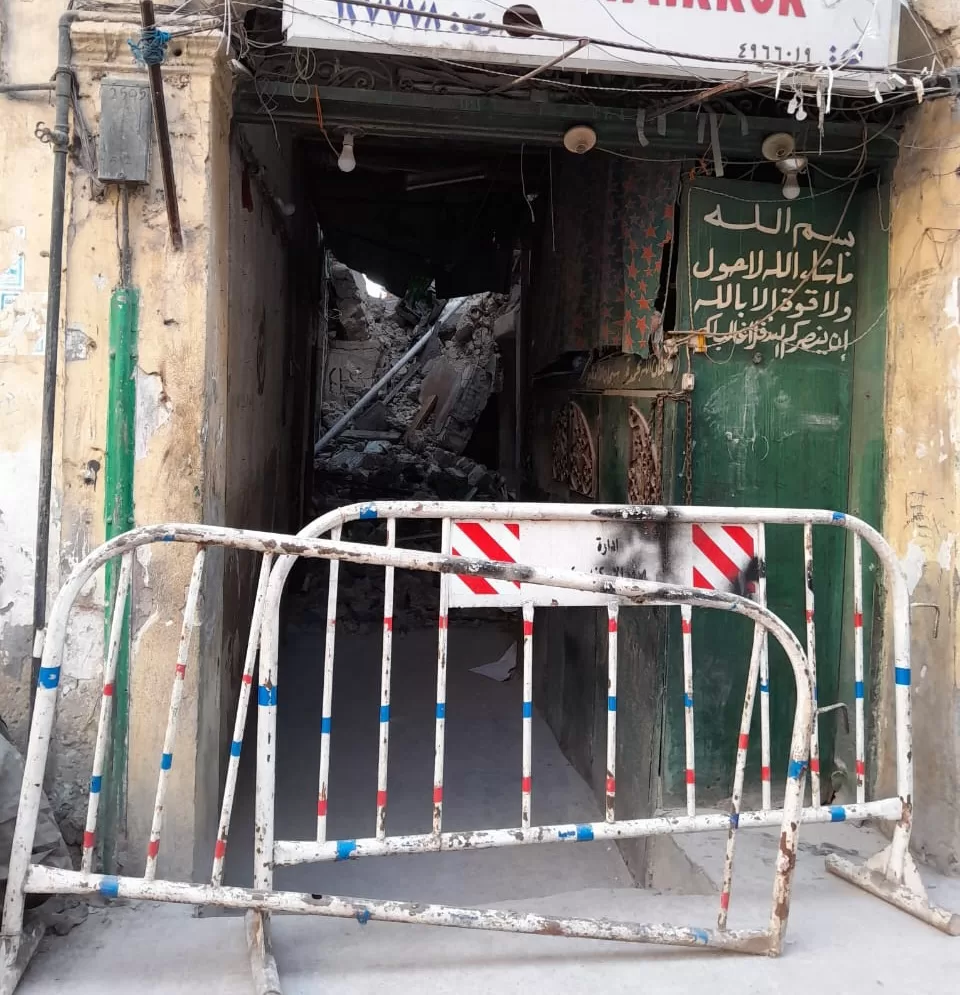 بالفحص، تبين أن العقار مكون من طابق أرضي يستخدم كمحلات، بالإضافة إلى طابقين علويين، وهو مبني بنظام الحوائط الحاملة والأسقف الخشبية، وتبلغ مساحته الإجمالية نحو 300 متر مربع. كما تبين أن العقار صادر له قرار هدم كلي حتى سطح الأرض برقم 77 لسنة 2009، ولم يتم تنفيذ القرار حتى الآن.
