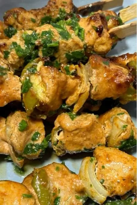 7. إذا كانت الصلصة تبدو سميكة، يمكنك وضعها في الميكروويف لمدة 10 دقائق ثواني حتى تذوب الزبدة.نستخدم فرشاة نمسح بالخلطة على أسياخ الدجاج.8