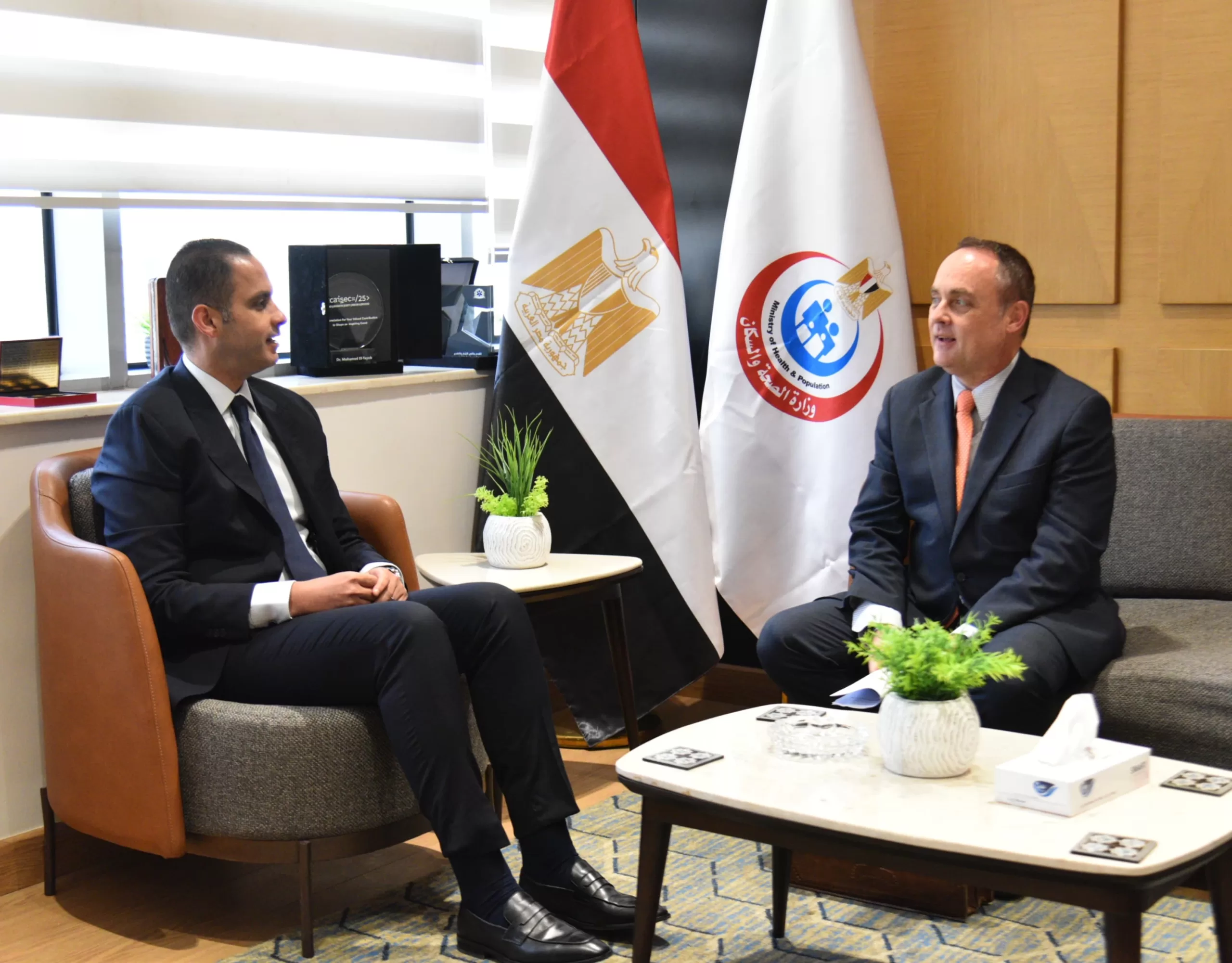 عقد الدكتور محمد الطيب، نائب وزير الصحة والسكان اجتماعاً مع “إيف ساسينراث”، ممثل صندوق الأمم المتحدة للسكان في مصر، بمقر الوزارة بالعاصمة الإدارية الجديدة، لمناقشة ملفات التعاون المشترك وتعزيز الشراكة في مجال التنمية البشرية.