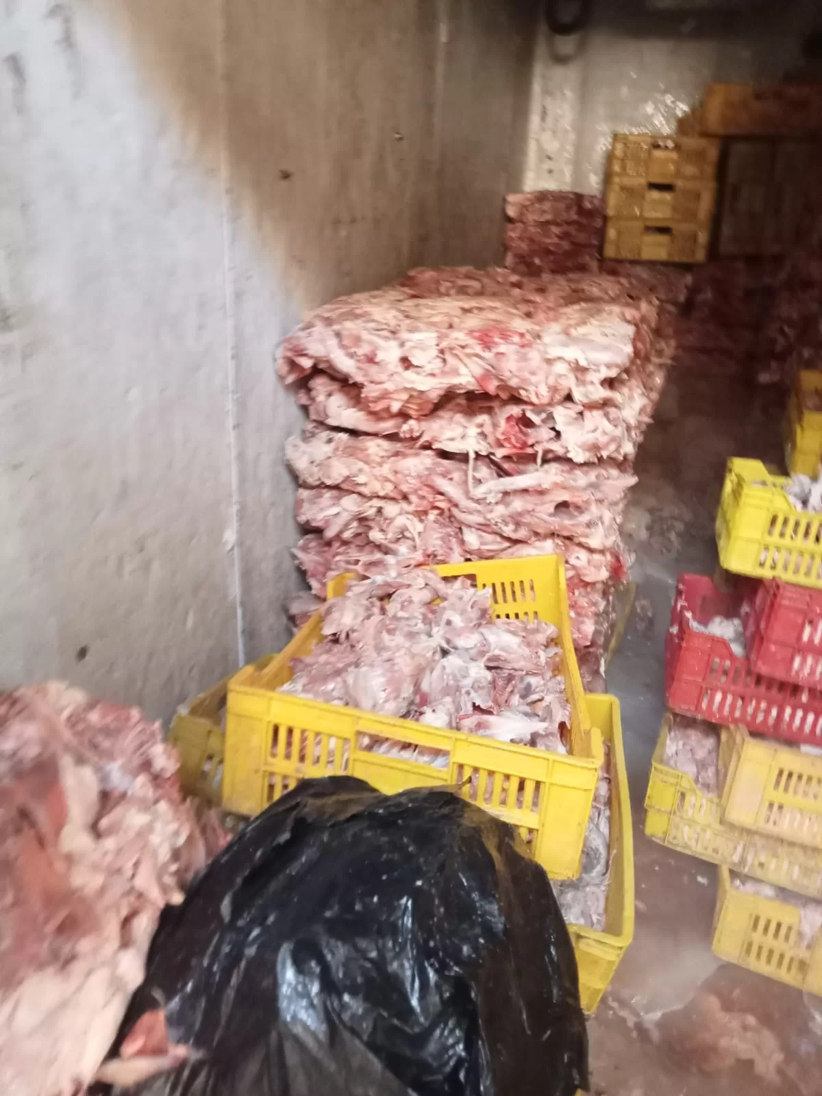 في إطار الحملات التفتيشية المكثفة على محال الجزارة ومنافذ بيع اللحوم والدواجن وثلاجات التخزين ، تمكنت محافظة الجيزة بالاشتراك مع مديرية الطب البيطري ومباحث التموين من ضبط 10 أطنان من هياكل الدواجن غير الصالحة للاستهلاك الآدمي بناحية كرداسة وذلك حفاظًا على الصحة العامة وسلامة المواطنين.