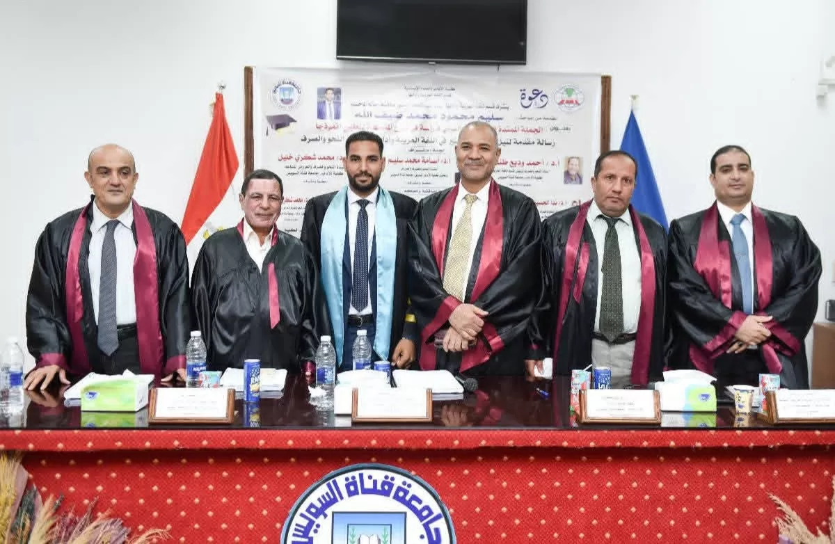 في رحاب كلية الآداب والعلوم الإنسانية جامعة قناة السويس ،وبعد مناقشات علمية مستفيضة ورصينة استمرت لعدة ساعات قررت لجنة الحكم والمناقشة بتاريخ يوم الأربعاء الموافق 20 اغسطس 2025 منح الباحث سليم محمود محمد ضيف الله درجة الماجستير في اللغة العربية وآدابها،مع الإشادة بجهود الباحث وتميز موضوع الدراسة.