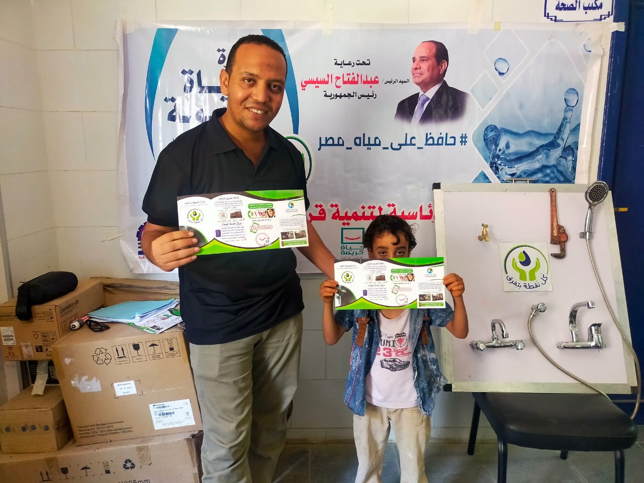 استهدفت الورشة؛ رفع الوعي لدي الرائدات الريفيات بأهمية المياه وكيفية صيانة الأدوات الصحية، كما تم توزيع مطبوعات للتوعية والتنويه عن الخط الساخن، إلى جانب عمل ندوة توعية للحديث عن أهمية ترشيد إستهلاك المياه