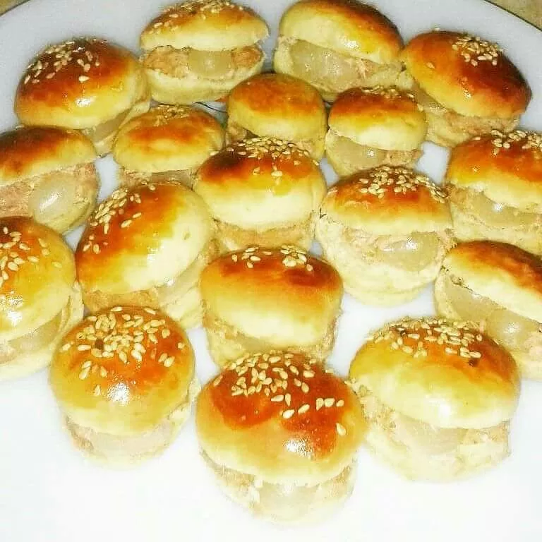 نقوم بوضع طحينه وعليها ملح وفلفل اسود وكمون وعصير ليمون وخل وماء ونقلبهم جيدا ثم نحضر تونه مصفاه من الزيت ونقلبها مع الطحينه ونقوم بحشو الساليزون ونضع بصل مخلل فى داخله والف هنا