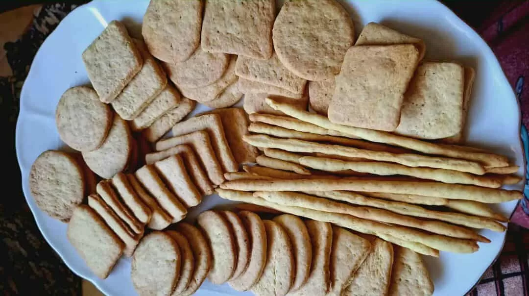 ٤.. تفرد العجينة بسمك رقيق وتقطع دوائر صغيرة أو اصابع كالبتون سالية وتخبز في فرن متوسط الحـ.ـرارة.