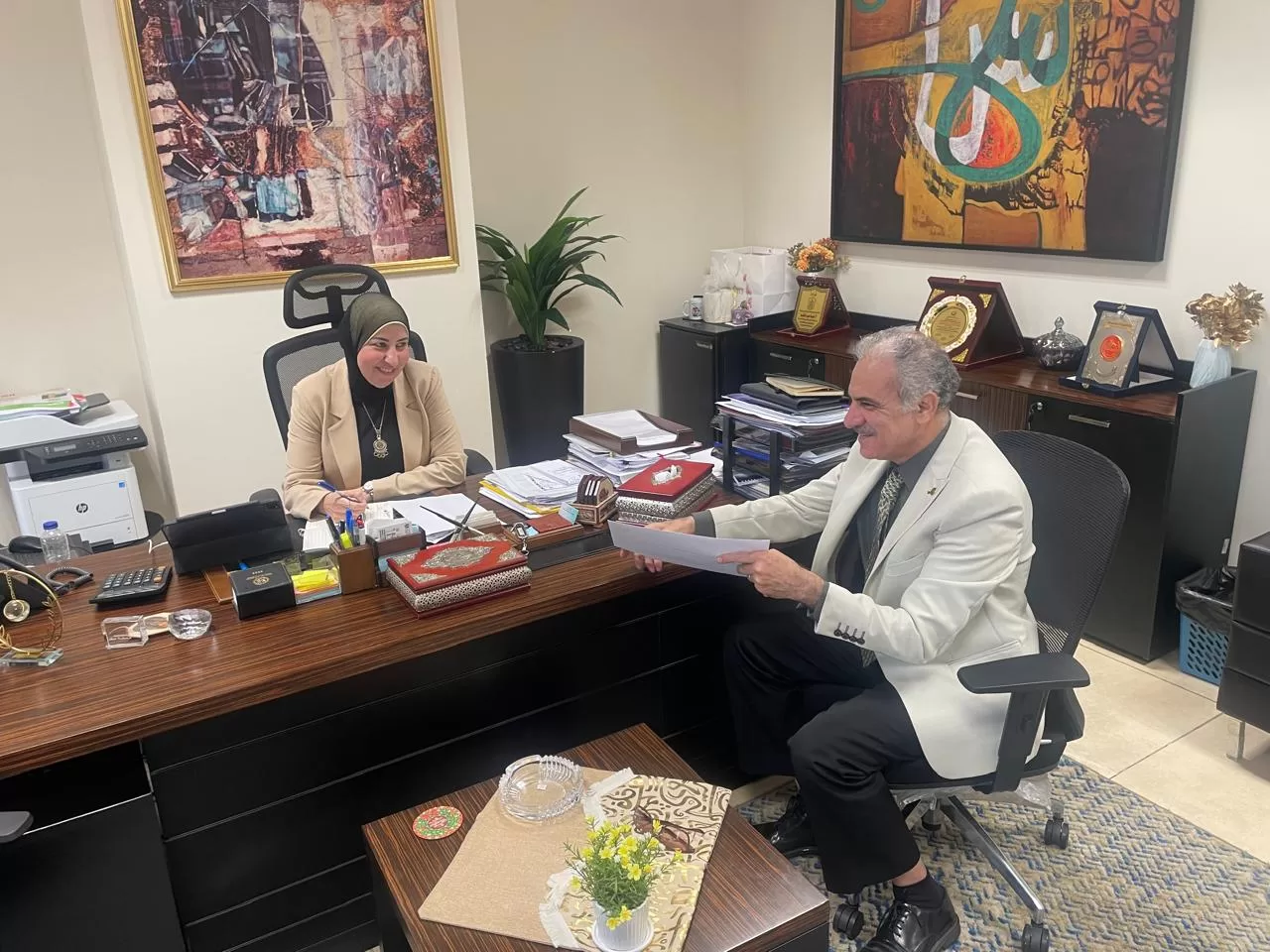 وخلال الزيارة، التقى الدكتور لؤي سعد الدين نصرت بالسيدة المحاسبة هبة عبدالمنعم، رئيس قطاع التنمية البشرية والاجتماعية بالوزارة.