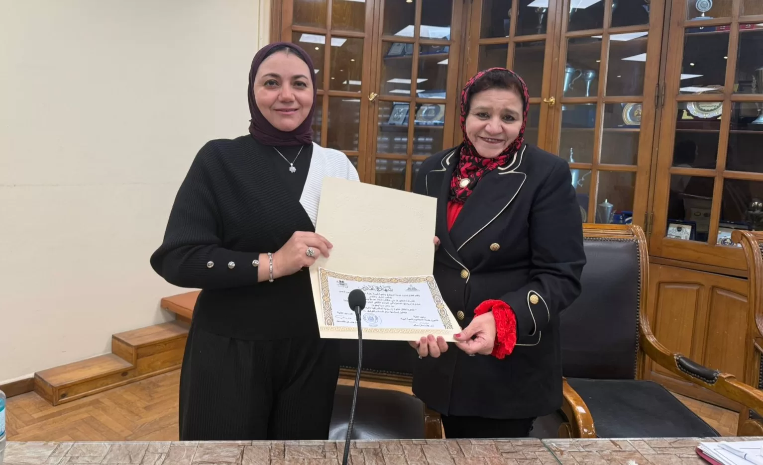 وقد قامت د حنان سالم وكيلة الكلية لشئون خدمة المجتمع وتنمية البيئة بمنح شهادة تقدير للدكتورة منى حافظ تكريما لدورها العلمي وإسهاماتها في خدمة المجتمع.