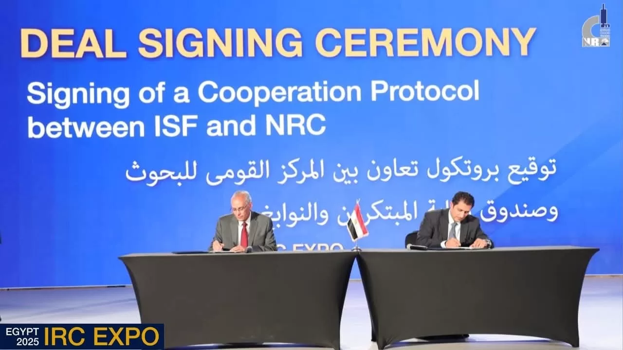 على هامش المعرض الدولى لتسويق البحوث والابتكار EXPO 2025 ، وقع الدكتور ممدوح معوض، رئيس المركز القومي للبحوث، والدكتور تامر حمودة، المدير التنفيذي لصندوق رعاية المبتكرين والنوابغ، بروتوكول تعاون لتعزيز التعاون بين الجانبين في مجال دعم المبتكرين ورواد الأعمال، وتطوير مشروعات تكنولوجية قائمة على مخرجات البحث العلمي، بما يتماشى مع استراتيجية التنمية المستدامة ورؤية مصر 2030.