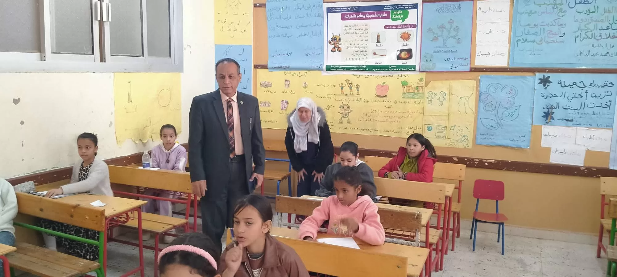 وتفقد مدير الإدارة خلال الجولة اللجان الامتحانية بالمراحل الابتدائية والإعدادية والثانوية حيث اطمأن على تهيئة الأجواء المناسبة لأداء الامتحانات وانتظام أعمال اللجان دون معوقات.