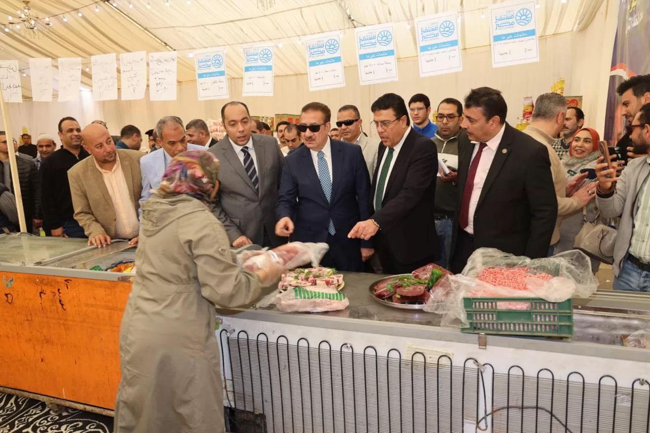 تفقد المحافظ أجنحة المعرض، و الذي يضم منتجات ( زيت – مكرونة – جبنة – سكر- أرز – عدس – سمنة – لحوم – فراخ – ياميش – تين – زبيب – تمور – جوز الهند – دقيق – ألبان – منظفات ) و غيرها من المنتجات الضرورية الهامة ، و حرص على الاطمئنان على جودة المنتجات و توافر كافة السلع و التعرف على قوائم الأسعار للتأكد من نسب التخفيضات مقارنة عن مثيلاتها بالأسواق ، و اطمأن من الأهالي على الأسعار و جودة المعروضات ، موجهاً مديريتى الطب البيطرى و التموين بالمتابعة المستمرة للحالة العامة للمعارض و زيادة الكميات المعروضة من السلع لإتاحتها بصفة مستمرة أمام المواطنين لتخفيف العبء عن كاهلهم .
