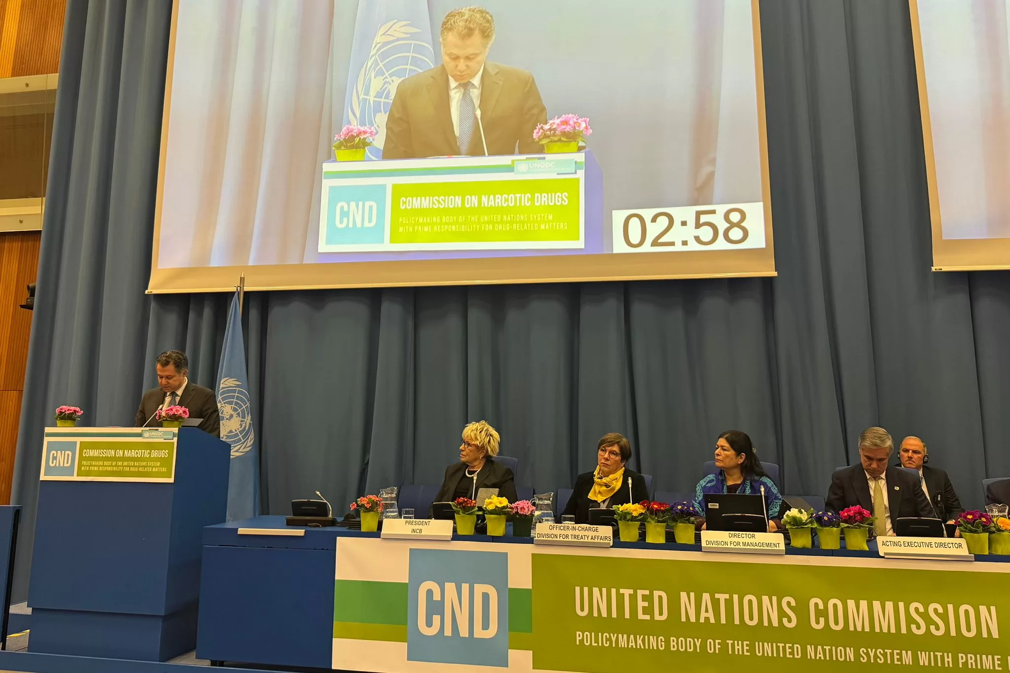 اجتماعات الدورة الـ 69 للجنة الأممية المعنية بالمخدرات التابعة للمجلس الاقتصادي والاجتماعي للأمم المتحدة، والتي تنعقد بمقر المنظمة في فيينا خلال الفترة من 9 مارس حتى 13 مارس 2026 بحضور الدكتور عمرو عثمان مدير صندوق مكافحة وعلاج الإدمان حيث يترأس وفد الصندوق واللواء مفيد فوزى مدير الادارة العامة لمكافحة المخدرات وكرستينا البرتين الممثل الإقليمي لمكتب الأمم المتحدة المعني بالمخدرات والجريمة للشرق الأوسط وشمال إفريقيا، وبحضور 2000 مشارك وأكثر من 110 متحدث رسمى ممثلين عن الدول المشاركة وعدد من وزراء الدول المعنيين بملف مكافحة المخدرات وسفراء من الدول المختلقة .