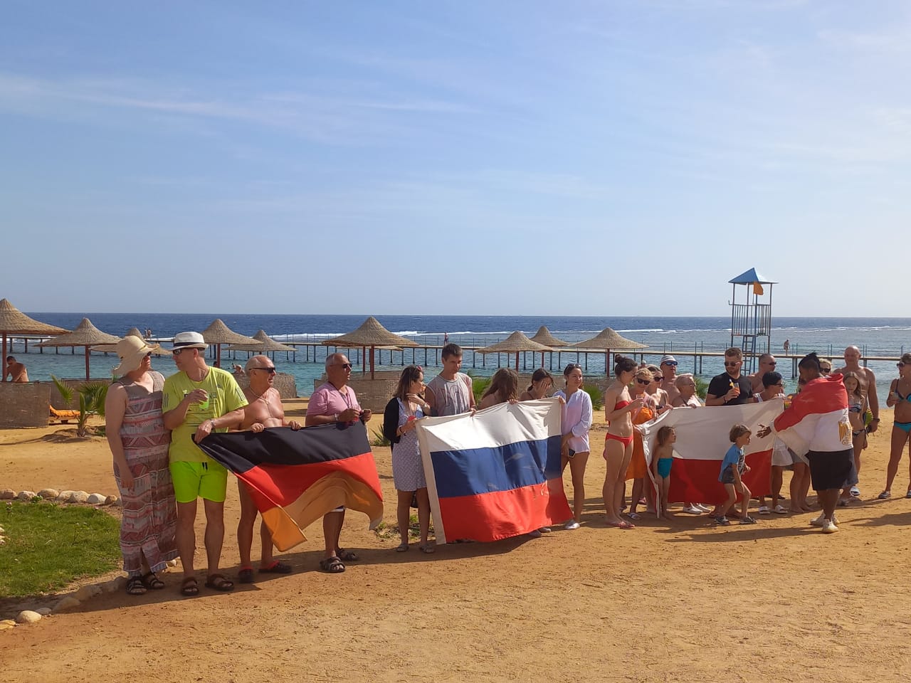 وأشار عاطف عثمان الخبير السياحي بالبحر الأحمر وصاحب فكرة المبادرة أن السائحين الأجانب من مختلف الجنسيات الأجنبية شاركوا في المبادرة حاملين اعلام بلادهم من دول أوكرانيا وبيلاروسيا وسويسرا و وبولندا والتشكيك ورومانيا وروسيا وألمانيا وايطاليا وفرنسا وذلك بشواطئ مرسي علم.